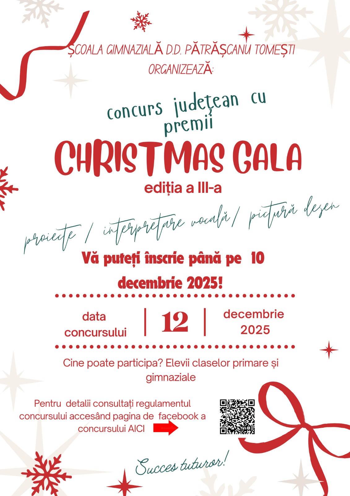 Proiectul Christmas Galla, aprobat în CPEEJ 2025, poziția 87, este organizat sub forma unui concurs care își propune să susțină dezvoltarea creativității elevilor într-un context cultural și educativ.